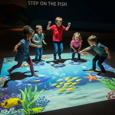 In einer Welt, in der Kinder wie Magnete an einen Kühlschrank geklebt sind, taucht unser interaktives Fußbodenprojektionsspiel "Fisch treten" wie ein Superheld auf.Es verwandelt den Durchschnittsboden in einen lebhaften Fischteich.Aber lassen Sie uns darüber reden: Ist es nicht an der Zeit, gegen das Couch-Potato-Syndrom zu kämpfen?Spielzeit aktiv und süchtig machen.